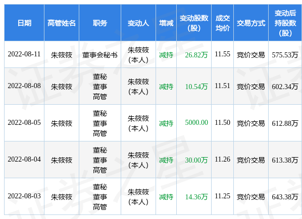 根据8月12日市场公开信息、上市公司公告及交易所披露数据整理,读客文化(301025)最新董监高及相关人员股份变动情况:2022年8月11日公司董事会秘书朱筱筱共减持公司股份26.82万股,占公司总股本为0.067%。变动期间公司股价上涨1.85%,8月11日当日收盘报11.56元。