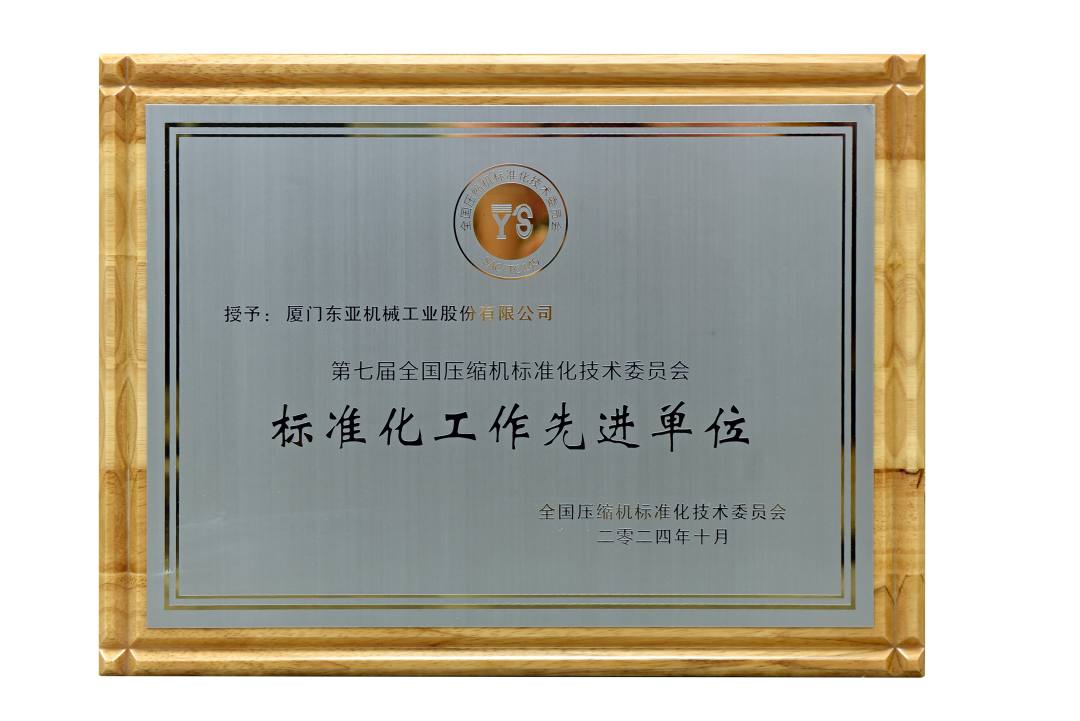 2024年10月31日-11月1日,全国压缩机标准化技术委员会七届五次会议暨标准审查会在福建省安溪县顺利召开。此次会议不仅对过去一年的各项工作进行了全面总结与深入分析,还特别对在标准化工作中表现突出的(标准化工作先进单位)进行了隆重表彰,以资鼓励。厦门东亚机械工业股份有限公司荣获“压缩机行业标准化工作先进单位”称号。