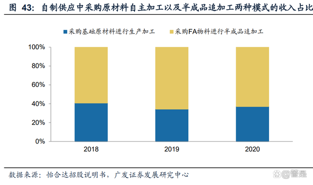 基于产品、商业模式的不同,主要是由于:(1)加工模式的不同。为满足客户小批量、高频次、短交期的下单要求,怡合达会在半产品和库存商品的品种和数量上维持一定的库存量。公司的部分产品采用“半成品追加工”模式,即将标准规格型号且市场通用性较强的机加工五金件提前储备作为备库半成品,待客户下单后只需简单追加工后即可包装发货,从而有效缩短交货周期。2018-2020年,半成品追加工模式产生的收入在自制供应所产生的总收入中的占比分别为59.15%、65.61%及62.86%。