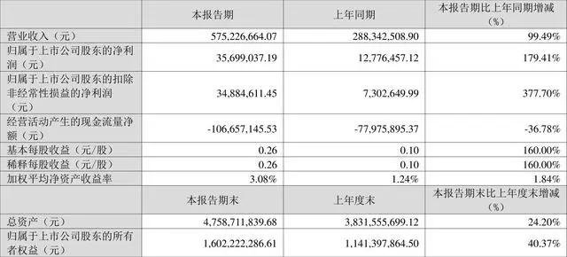 中证智能财讯仕净科技(301030)4月27日披露2023年第一季度报告。报告期内公司实现营业总收入5.75亿元,同比增长99.49%;归母净利润3569.90万元,同比增长179.41%;扣非净利润3488.46万元,同比增长377.70%;经营活动产生的现金流量净额为-1.07亿元,上年同期为-7797.59万元;报告期内,仕净科技基本每股收益为0.26元,加权平均净资产收益率为3.08%。