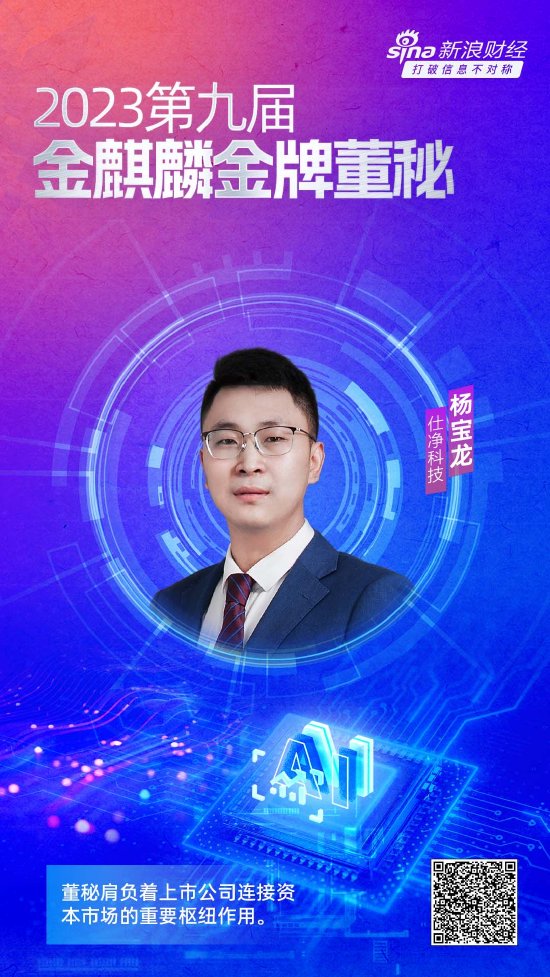 8月11日,第九届新浪财经金麒麟金牌董秘荣誉揭晓。在本次评选中,仕净科技公司董秘杨宝龙荣获第九届金麒麟金牌董秘荣誉。