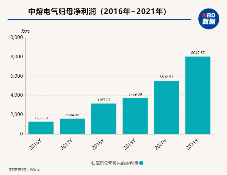 4月24日晚间,中熔电气交出上市以来的首份年报,2021年录得营收3.8亿元,同比增长70.1%,净利润8047.7万元,同比增长45.3%。这已是中熔电气连续六年实现营收和净利润稳定增长。