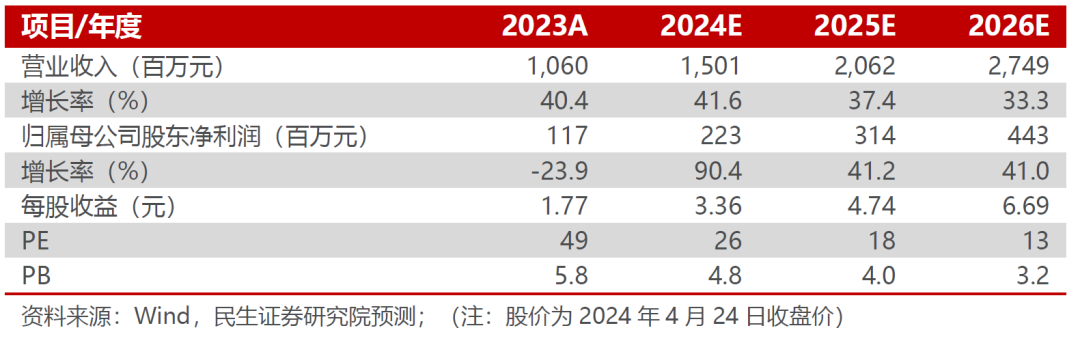 ■事件:公司发布2023年年报及2024年一季报。2023年公司实现收入10.60亿元,同比增长40.41%,实现归母净利润1.17亿元,同比下降23.94%,实现扣非归母净利润1.14亿元,同比较下降22.32%。