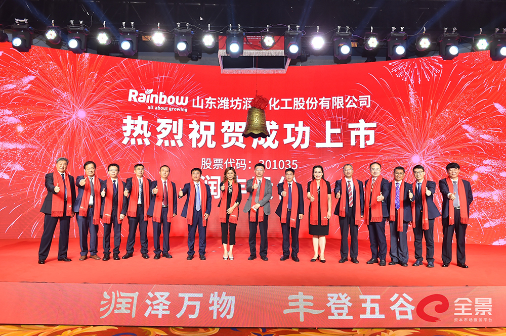 东北证券党委委员、副总裁梁化军在致辞中表示,随着上市钟声的敲响,润丰股份将掀开发展历史上的崭新一页。相信润丰股份定能牢牢把握登陆资本市场的宝贵机遇,不断提升综合实力和竞争力,努力朝着成为国际一流植保公司的宏伟目标前进,继续谱写勇攀新高峰的辉煌篇章!