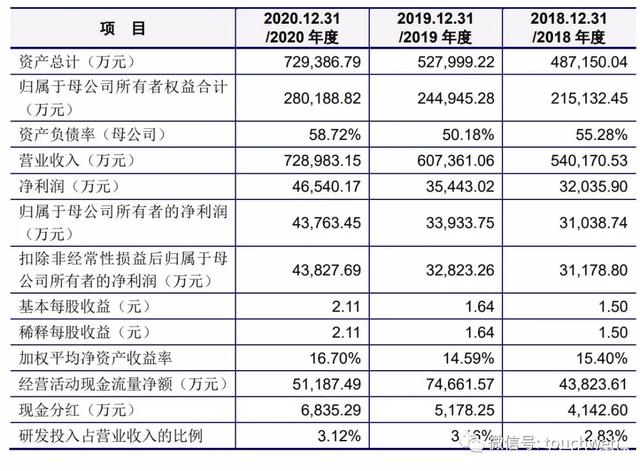 招股书显示,润丰股份2018年、2019年、2020年营收分别为54亿元、60.74亿元、72.9亿元;净利润分别为3.2亿元、3.54亿元、4.65亿元;扣非后净利分别为3.1亿元、3.3亿元、4.38亿元。
