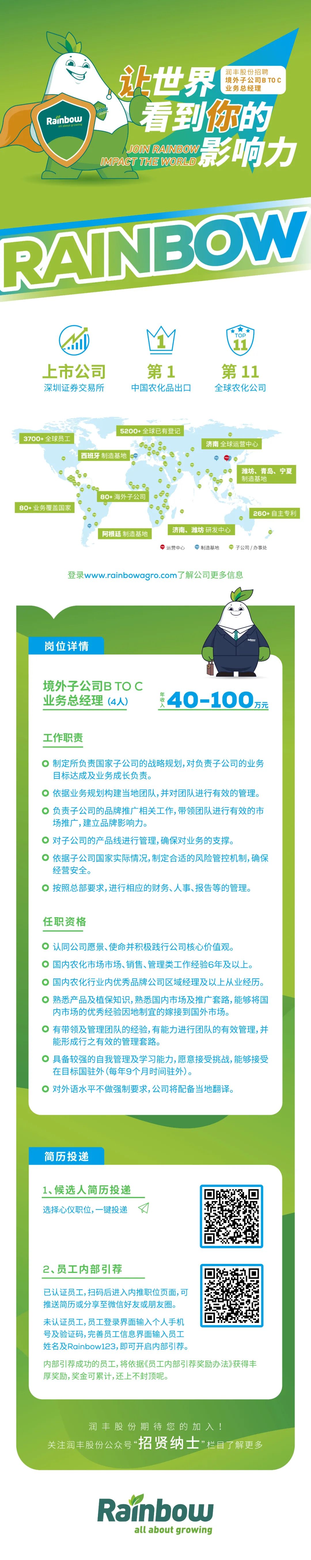 职等你来│润丰股份境外子公司B TO C业务总经理招聘