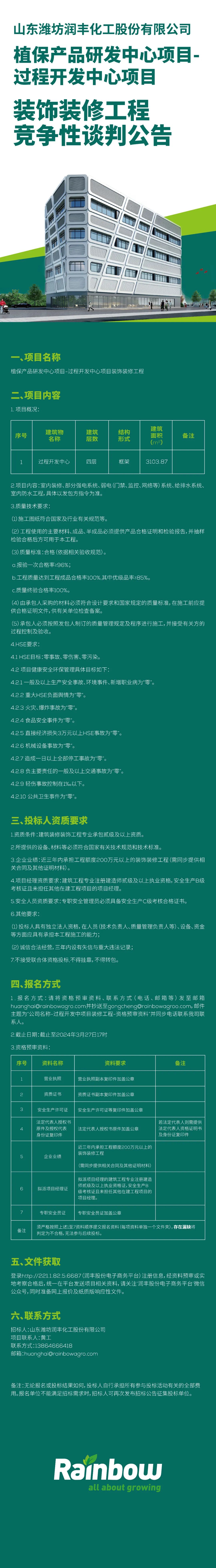 润丰股份植保产品研发中心项目-过程开发中心项目装饰装修工程竞争性谈判公告