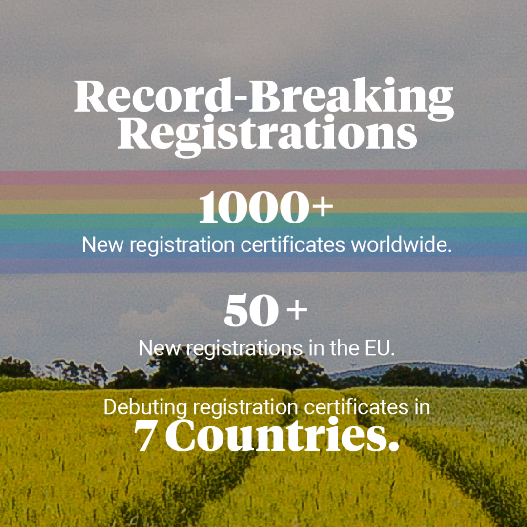 这一年,1000多项全球新增登记证书、50多项欧盟市场新增登记证书、7个国家首次获得登记证书,镌刻下我们开拓国际市场的坚定足迹;