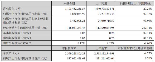 中国经济网北京8月1日讯昨晚,保立佳(301037.SZ)发布2023年半年度报告。今年上半年,保立佳实现营业收入11.93亿元,同比减少27.26%;归属于上市公司股东的净利润183.01万元,同比减少92.12%;归属于上市公司股东的扣除非经常性损益的净利润145.20万元,同比减少93.96%;经营活动产生的现金流量净额1.16亿元,上年同期-1.14亿元。