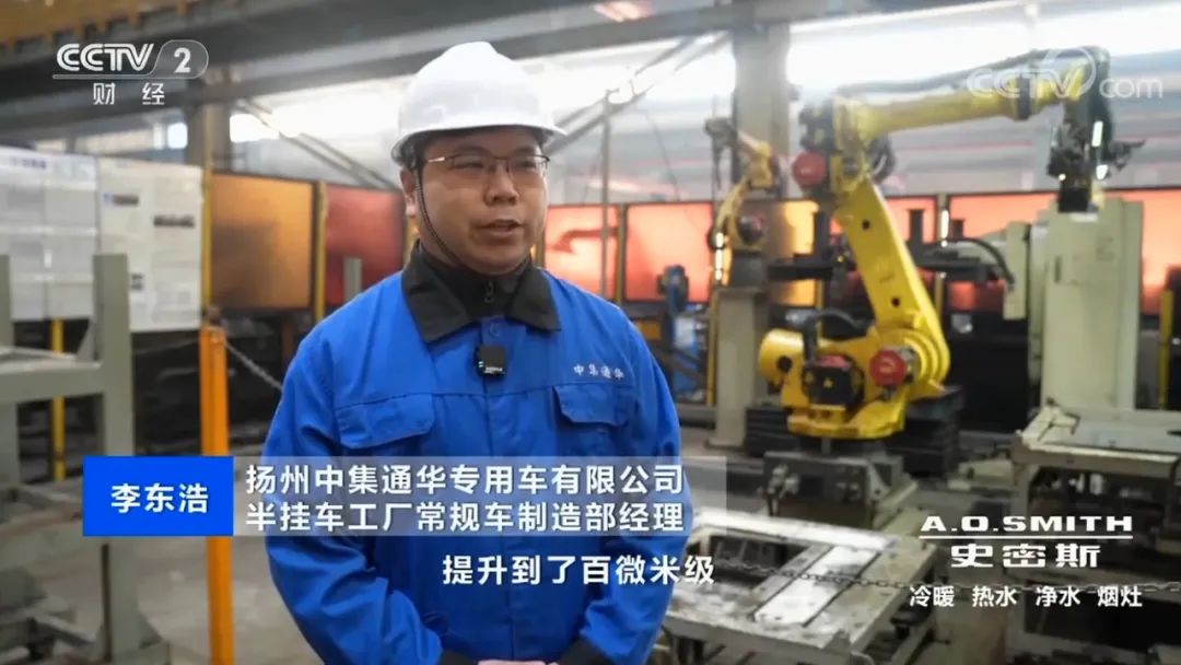 扬州通华半挂车工厂常规车制造部经理李东浩:将拼装精度从原来毫米级提升到了百微米级,保证了焊接质量的稳定性,使我们的一次合格率达到了99%以上。