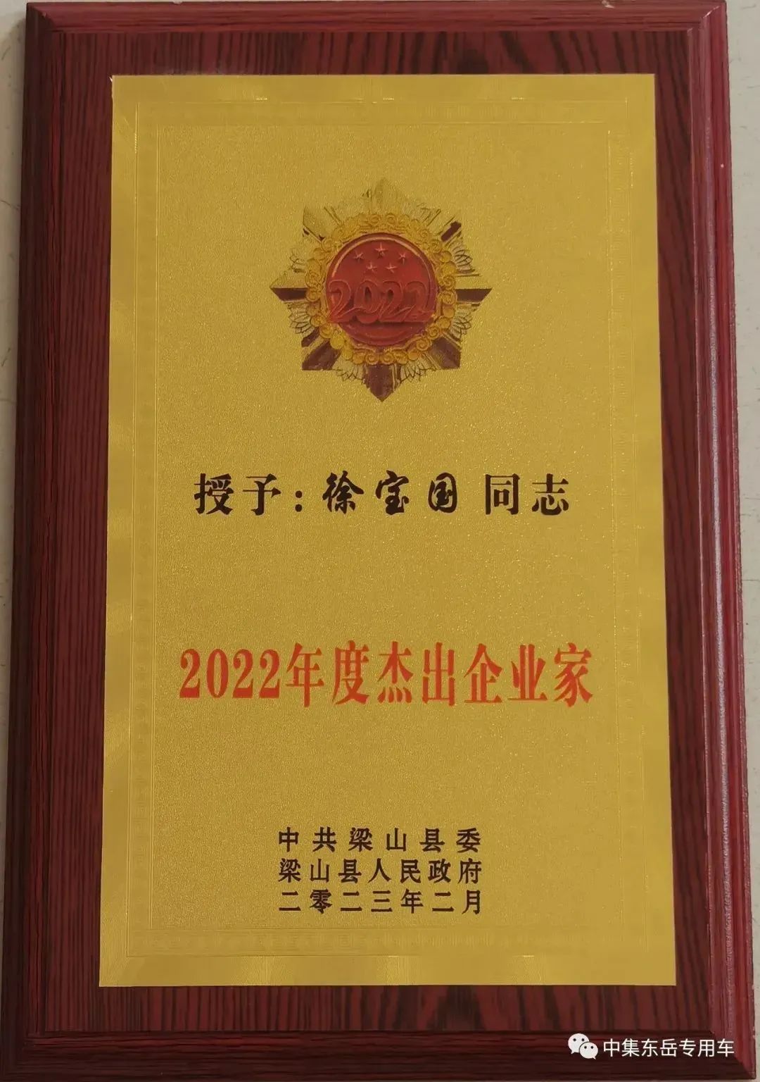 2023年2月21日,梁山县产业高质量发展暨招商引资大会,在梁山县政府大会堂隆重召开,梁山县委、县政府授予中集车辆旗下梁山中集东岳车辆有限公司(以下简称“梁山东岳”)总经理徐宝国等10名同志“2022年度杰出企业家”称号。