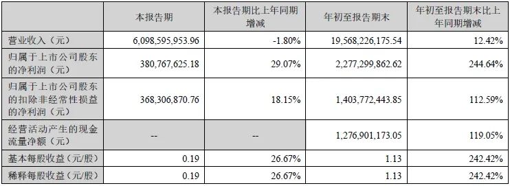 10月25日晚间,中集车辆(集团)股份有限公司(下称:中集车辆)公布了2023年第三季度报告。报告显示,2023年前三季度,中集车辆实现营业收入195.68亿元(人民币,下同),同比增长12.42%;归属于上市公司股东的净利润22.77亿元,同比大涨244.64%;每股收益1.13元,同比增长242.42%。