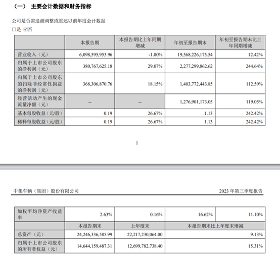今年前三季度,中集车辆实现营业收入为195.68亿元,同比增长12.42%;净利润和扣非净利润分别为22.77亿元、14.04亿元,同比增长244.64%、112.59%。比去年今年的业绩要好很多。
