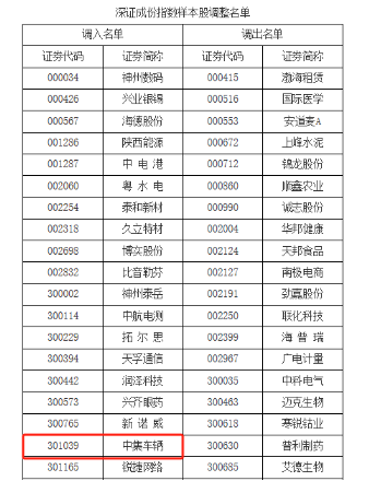 中集车辆(301039.SZ)入选深证成指样本股,本次调整于2023年12月11日正式实施。