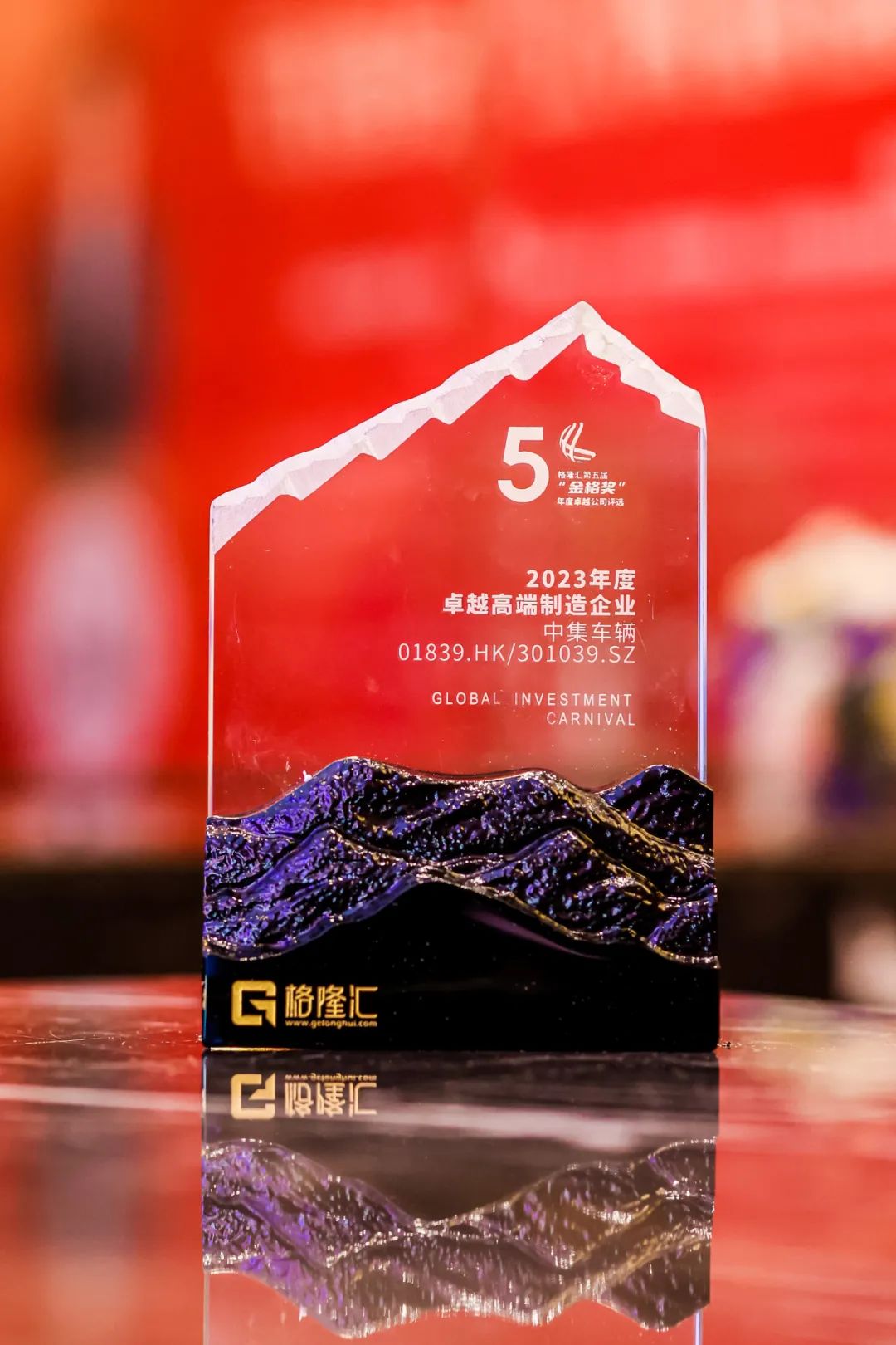 12月,在“格隆汇·全球投资嘉年华·2024”的“金格奖”年度卓越公司评选中,中集车辆先后斩获“年度投资价值奖”、“年度卓越高端制造企业”两项大奖。