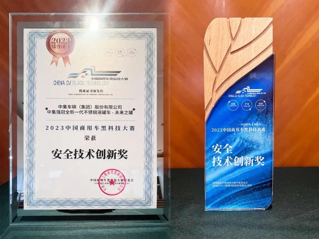 12月,2023年第二届中国商用车黑科技大赛颁奖典礼暨中国商用车技术大会在上海法兰克福汽配展同步召开。中集车辆强冠业务集团全新一代不锈钢液罐车——未来之罐、电动混凝土搅拌运输半挂车分别摘得“安全技术创新奖”和“节能技术创新奖”两项大奖。