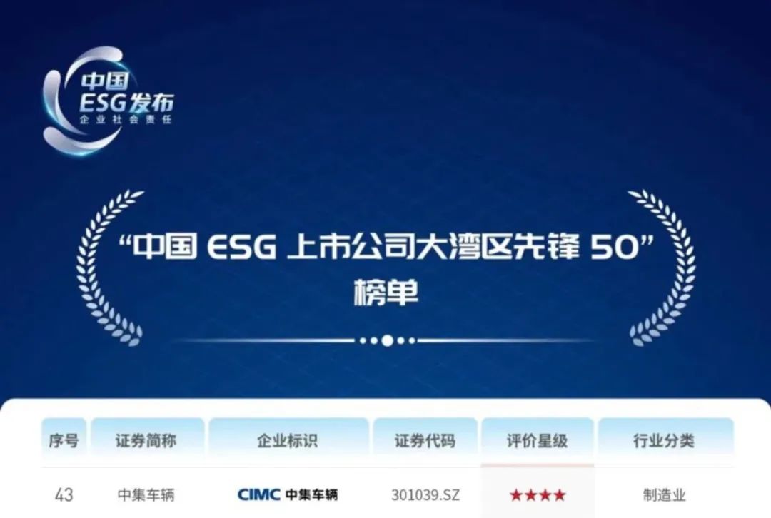 8月,中集车辆应国家战略需求和“制造业当家”号召,在促进粤港澳共同繁荣、开拓绿色新兴产业、坚持科技创新、推动公益慈善等领域持续发力,起到了先行示范作用,成功入选“中国ESG上市公司大湾区先锋50”企业名单。