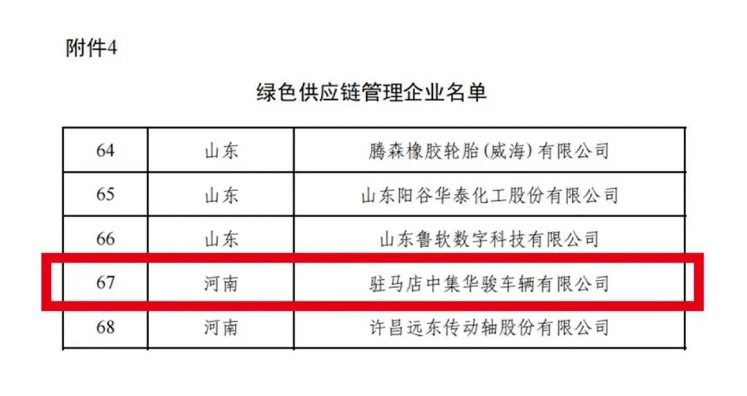 3月,工业和信息化部办公厅正式发布了《工业和信息化部办公厅关于公布2022年度绿色制造名单的通知》,中集车辆旗下驻马店华骏车辆入选国家级绿色供应链管理企业名单。这是其继2018年11月份被工业和信息化部评为国家级“绿色工厂”后在绿色制造体系荣获的第二个国家级荣誉。