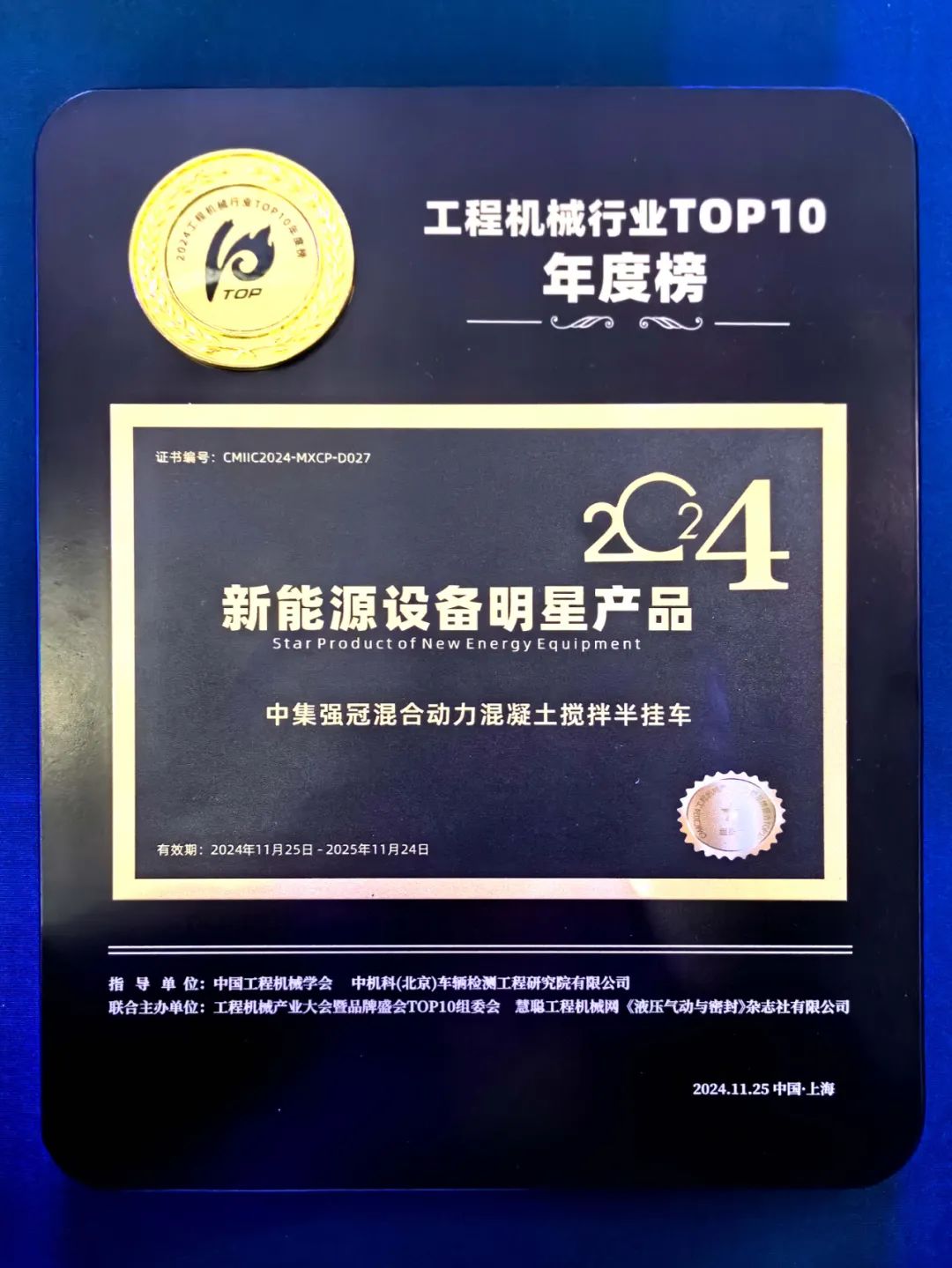 11月25日,工程机械行业的年度盛会——CMIIC 2024工程机械产业大会在上海隆重举行。本次大会以“主配协同·向新求质”为主题,吸引了众多行业同仁、权威专家及企业领袖齐聚一堂,共同探讨工程机械行业的未来发展路径。中集车辆强冠业务集团(以下简称“中集强冠”)以卓越的产品实力和创新精神,荣获“2024工程机械行业TOP10年度新能源设备明星产品”奖项。这一荣誉不仅是对其产品在技术创新方面所取得积极成果的认可,也彰显了中集强冠在新能源领域所做出的持续且重要的贡献。