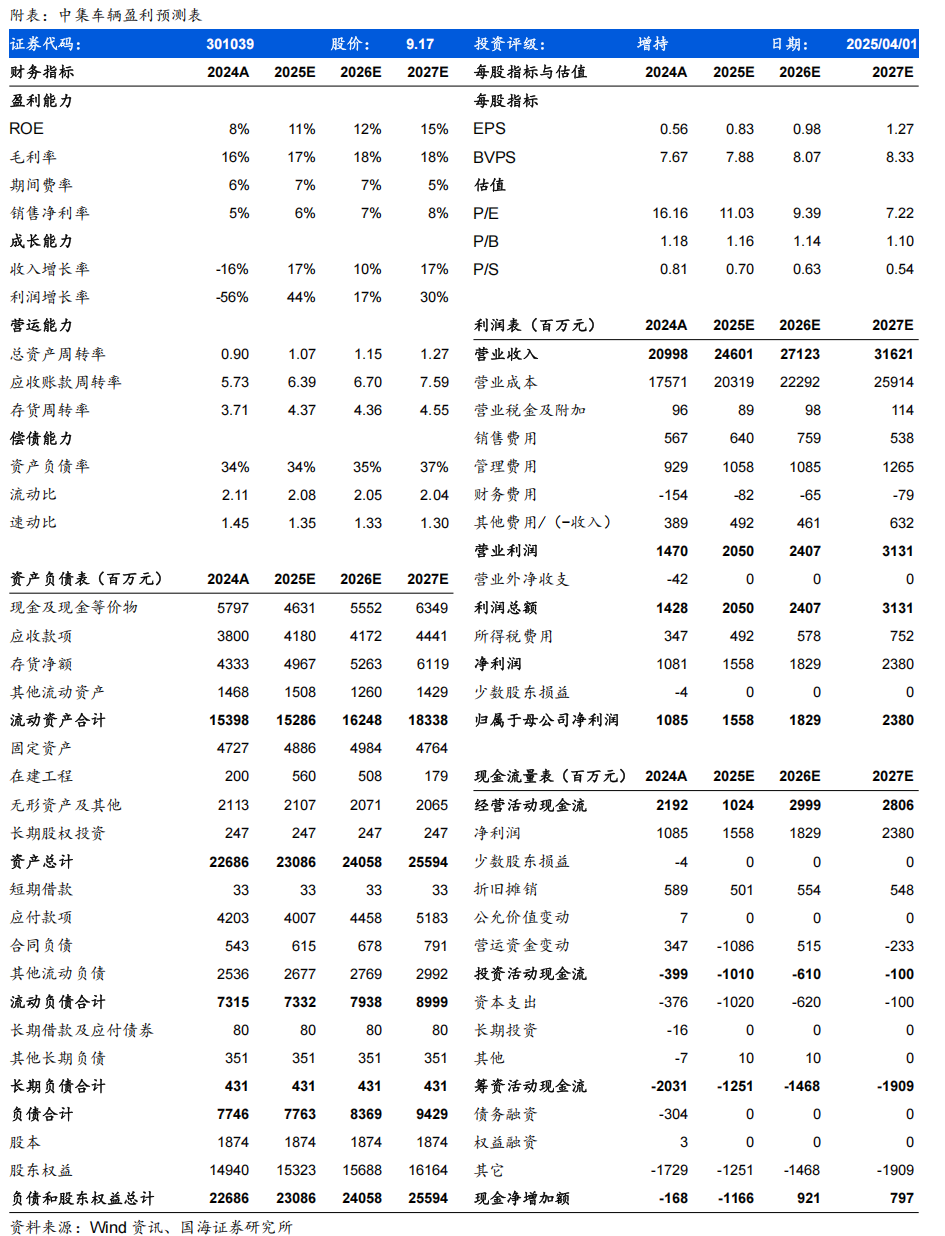 2024年报中公司以产品纬度出发重述业务,并发力EV·DTB积极参与/受益国内重卡新能源化趋势;2025年中国、北美重卡挂车市场双复苏(FTR Transportation Intelligence 预测2025年美国挂车市场将温和复苏,yoy+15%),且公司在轻量化挂车/新能源上装市场具备较强竞争力,看好公司同时兑现α与β,释放业绩弹性。2024年公司累计分红率97%,未来推出3年股东回报计划,持续提升股东价值。