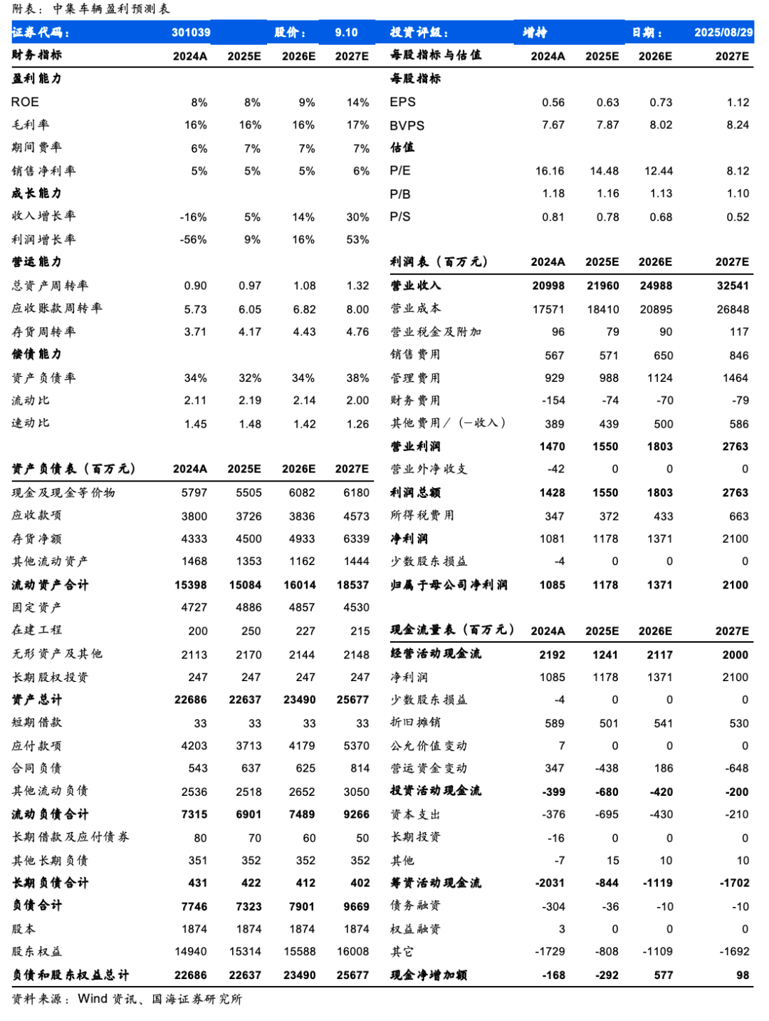 从2025年向后展望,公司具备多项看点。2024年报中公司以产品纬度出发重述业务,并发力EV·DTB积极参与/受益国内重卡新能源化趋势;2025年中国市场已有明显回升,北美市场有望在2025Q3后触底回升。且公司在轻量化挂车/新能源上装市场具备较强竞争力,看好公司同时兑现α与β,释放业绩弹性。2024年公司累计分红率97%,未来推出3年股东回报计划,持续提升股东价值。