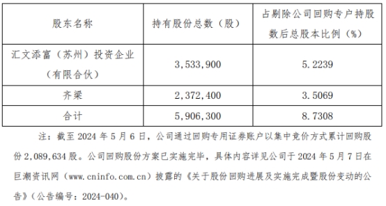 本次减持原因为自身资金需要,股份来源为首次公开发行前发行的股份。其中汇文添富拟减持公司股份不超过1,380,000股(占公司剔除回购专户持股数后的总股本比例2.0399%)。汇文添富是在中国证券投资基金业协会完成备案的私募投资基金。齐梁拟减持公司股份不超过600,000股(占公司剔除回购专户持股数后的总股本比例0.8869%),通过集中竞价交易方式进行减持的,任意连续90日内,减持数量不超过公司总股本的1%;通过大宗交易方式进行减持的,任意连续90日内,减持数量不超过公司总股本的2%。