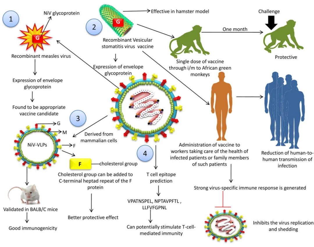 尼帕病毒是一种新兴的、高致病性的副粘病毒,于1998年首次在马来西亚暴发。因其高病死率(40%-75%)、人畜共患、潜伏期长等特性,被WHO列为重点研究的病原体。