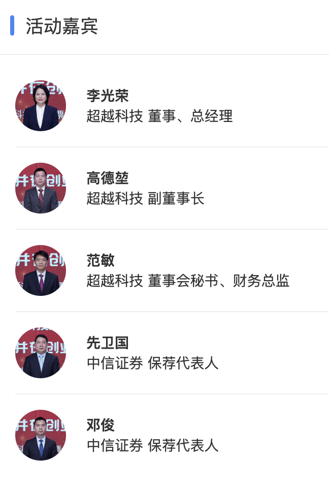 全景网8月12日讯超越科技(301049)首次公开发行股票并在创业板上市网上路演于2021年8月12日在全景网成功举办。超越科技董事、总经理李光荣等公司管理层主要成员和本次发行的保荐机构(主承销商)中信证券(600030)相关人员将出席了此次路演活动,并与投资者进行实时在线交流。