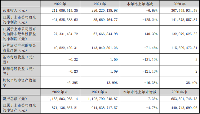 2022年,超越科技实现营业收入2.11亿元,同比下降6.69%;实现归属于上市公司股东的净利润-2162.56万元,同比下降125.24%;实现归属于上市公司股东的扣除非经常性损益的净利润-2733.15万元,同比下降140.39%;经营活动产生的现金流量净额4082.24万元,同比下降71.46%。