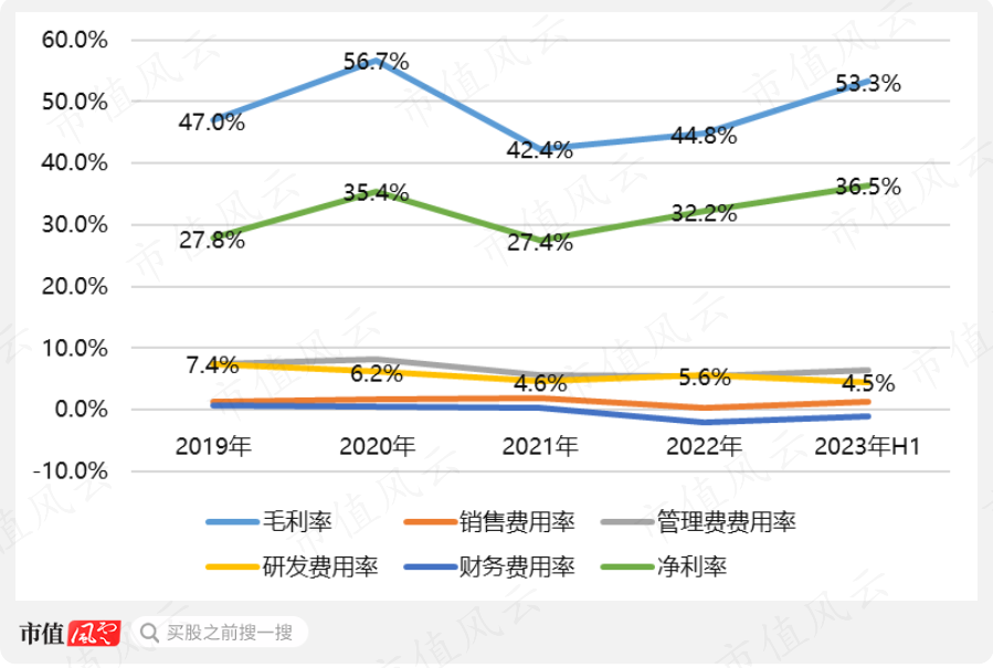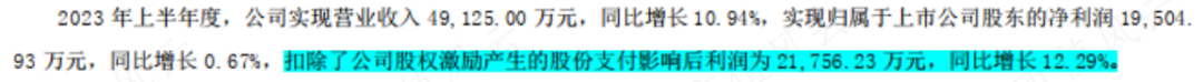 以2023年上半年为例,营收不足5亿,净利润接近2个亿,盈利能力已经很恐怖的。这里面还有股权支付的影响,如果扣除后,利润为2.18亿,同比增长12.29%,与上半年营收完全同步。