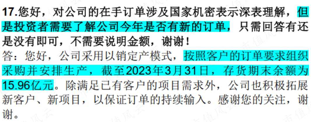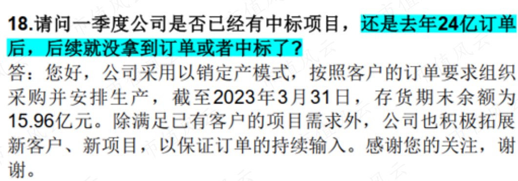 在半年报业绩发布前,投资者在提问时最关心的除了公司股价持续下跌是不是因为中报要暴雷外,另一个问的最多的问题就是“公司是不是进入订单断档真空期,没有新订单了。”