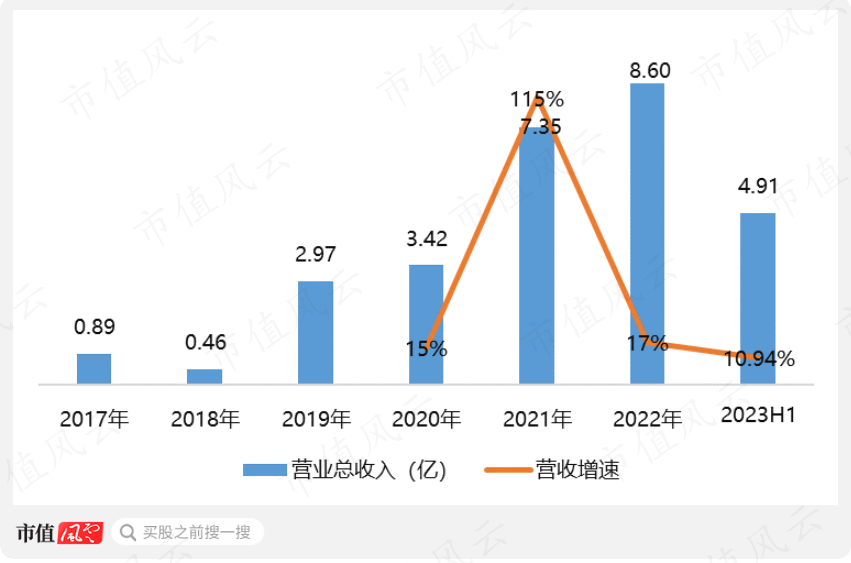 从营收增速来看,上半年10.94%的营收增长属实普通,要知道雷电微力曾在2019年凭借546%的营收增长一跃突破亿元大关,达2.97亿。2021年上市当年又再次斩获115%的优异涨幅。