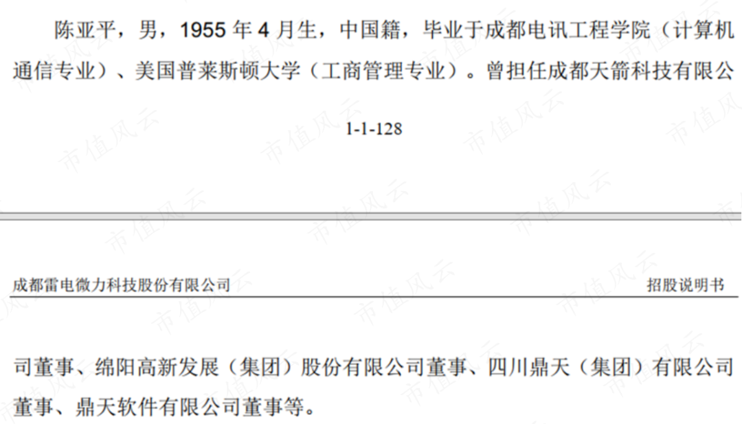 陈亚平不仅在2007年主导成立了雷电微力的前身有限公司,还参与了天箭科技(002977.SZ)前身成都鼎天微电技术有限公司的设立。