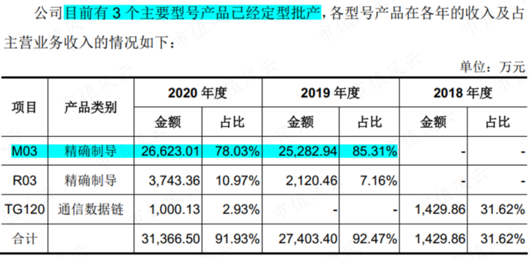 2021年上市时,雷电微力已经有3个主要型号产品定型批产,M03、R03和TG120,定型时间分别为2018年、2019年和2016年。其中,M03和R03用于精确制导,TG120用于通信数据链。