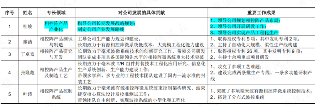 更有意思的是公司的核心研发团队,这5人在加入公司前没有1个人拥有“有源相控阵微系统技术”工作经验,但经过5人努力,其所有核心技术均自主研发,且达到国际领先水平。