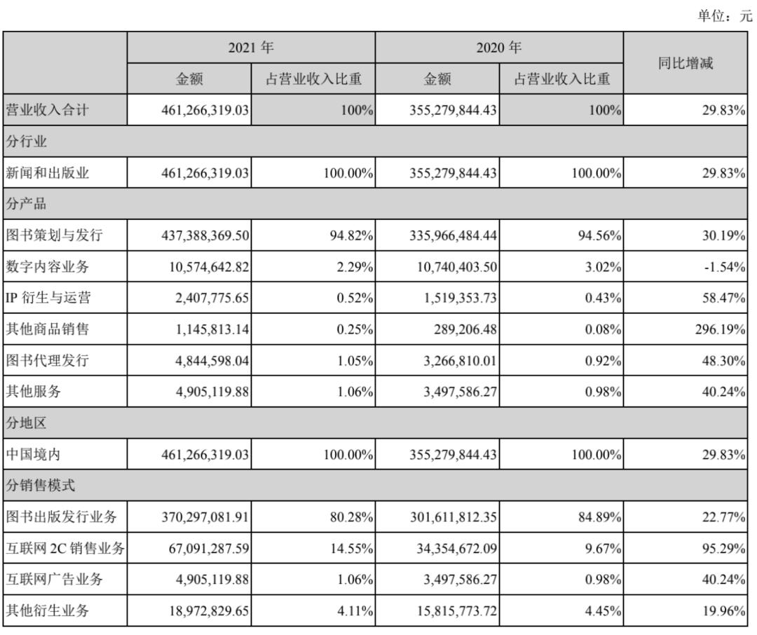 除此之外,包括电子书、有声书业务以及IP衍生与运营业务等的其它衍生业务2021年总计收入1897.28万元,较2020年也有小幅增长。