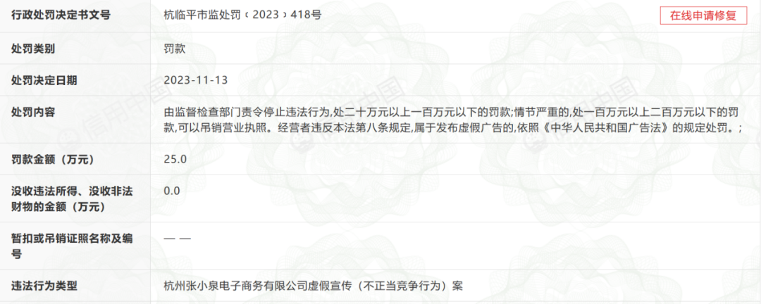 近日,张小泉股份有限公司(张小泉,301055)的全资子公司杭州张小泉电子商务有限公司为应对“拍蒜断刀”舆情,通过刷单的方式,提高部分商品的好评率,构成了虚假宣传,欺骗、误导消费者行为,被杭州市临平区市场监督管理局罚款25万元。