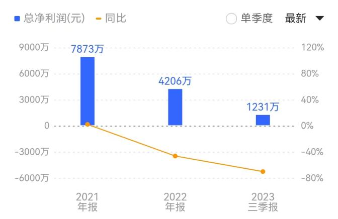 截至2023年第三季度,张小泉营收5.66亿元,同比下滑13.8%;净利润1231万元,同比下滑70.37%。