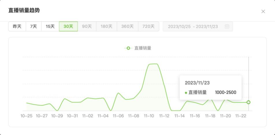 飞瓜数据显示,自10月25日至11月23日,近一个月时间,张小泉仅11月10日、11月11日直播销量在7500至1万之间。至11月23日,张小泉直播销量已恢复至近一月时间的销量常态,在1000至2500之间。