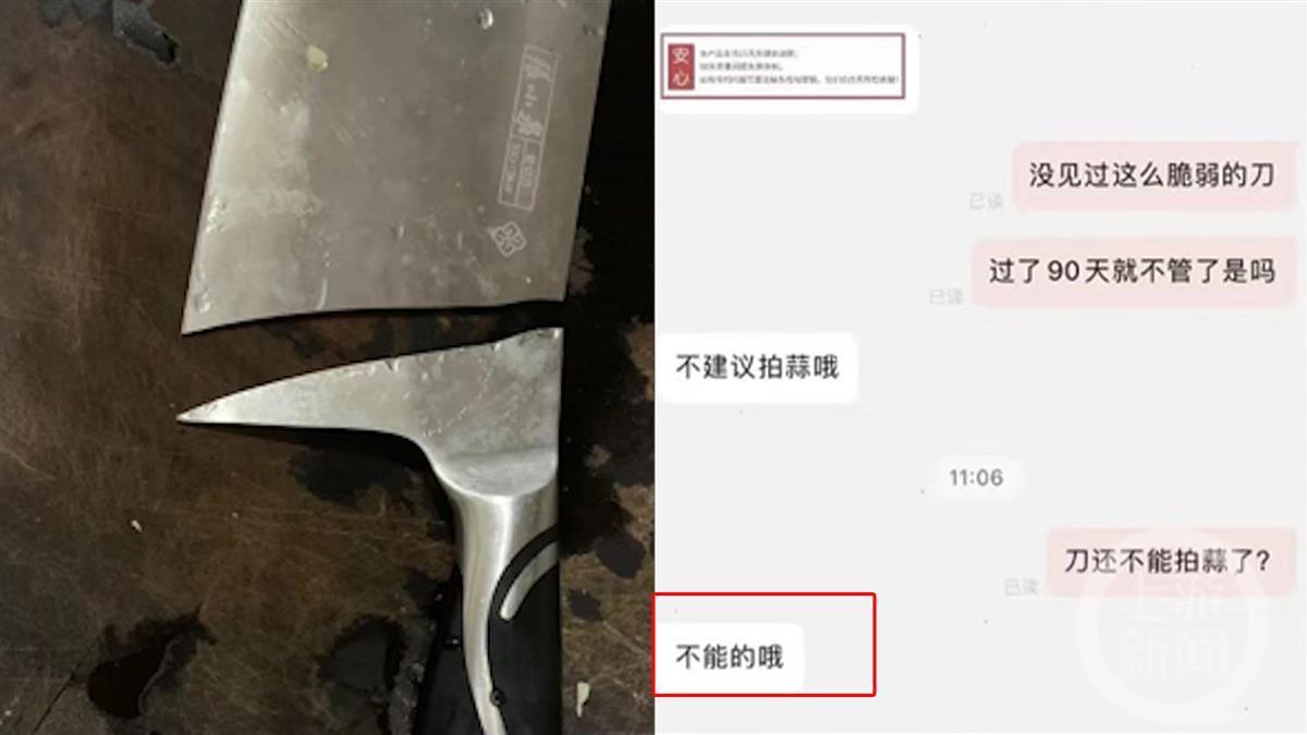 消费者此前曝光张小泉菜刀拍蒜即断,客服回应引发网络热议(来源:网络截图)