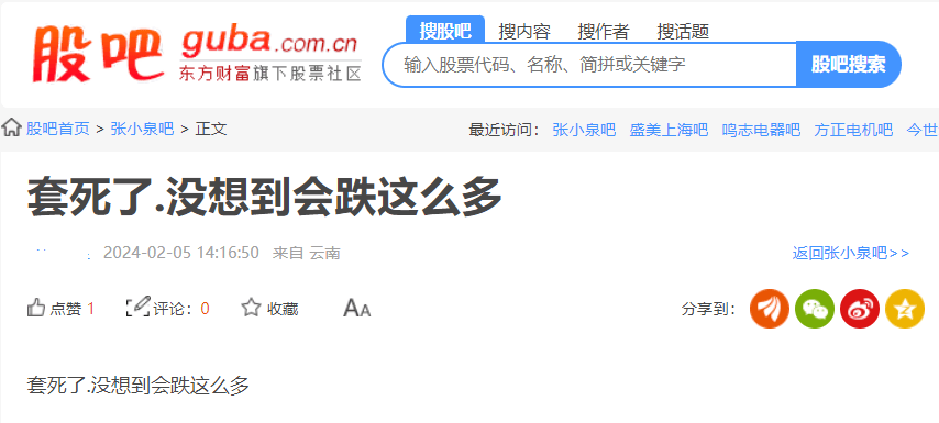 “套死了,没想到会跌这么多。”2月5日,一位投资者在张小泉(301055)的股吧里抱怨,就在当天,张小泉的股价创出了历史新低。