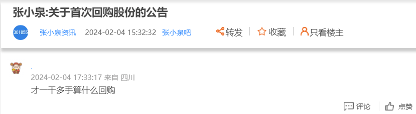 尽管张小泉做出了首次回购,但有投资者并不满意,“才一千多手算什么回购。”