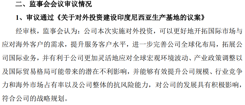 成本优势:印尼劳动力成本仅为国内1/3,叠加本地化原料采购降本空间;