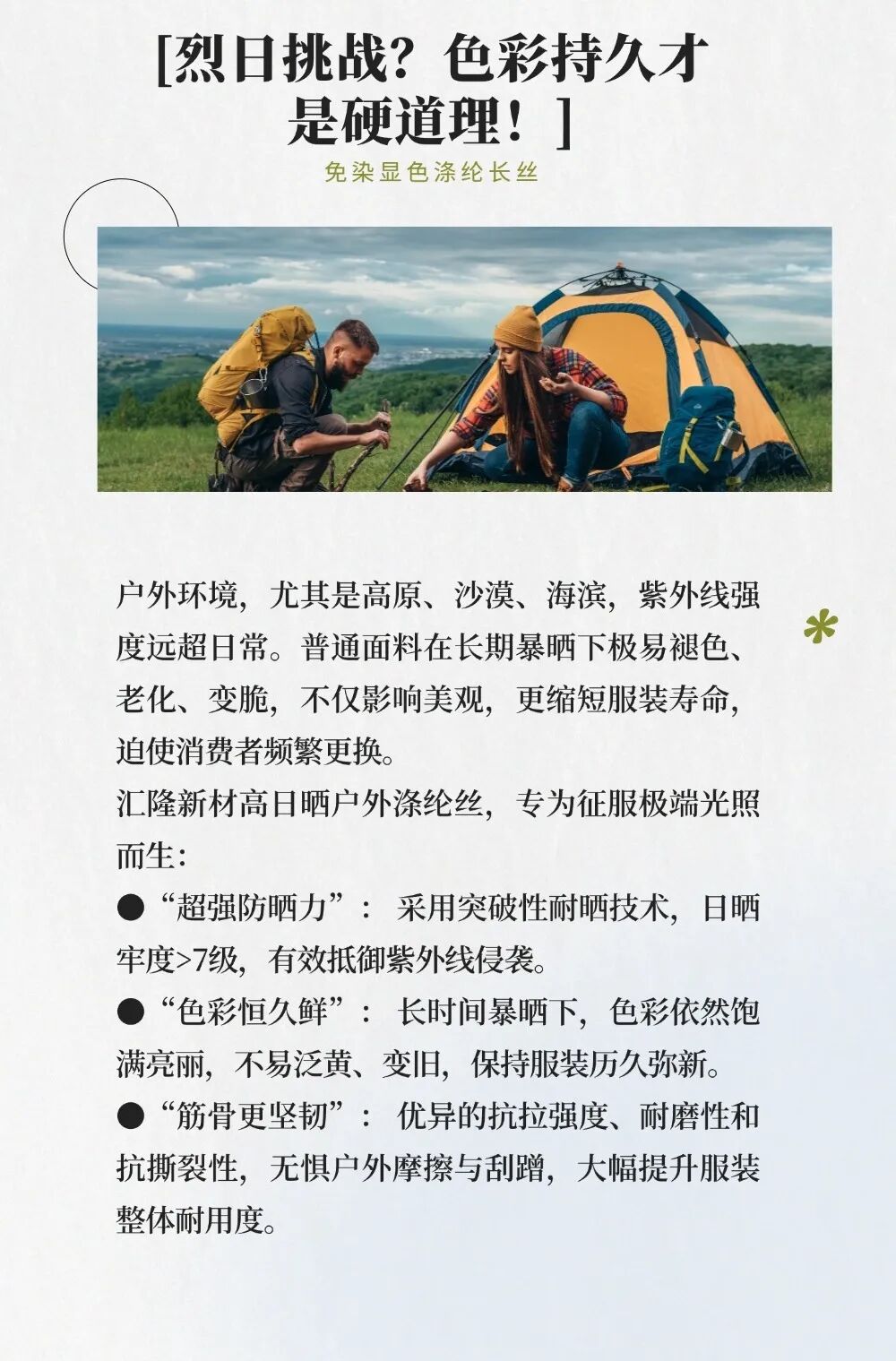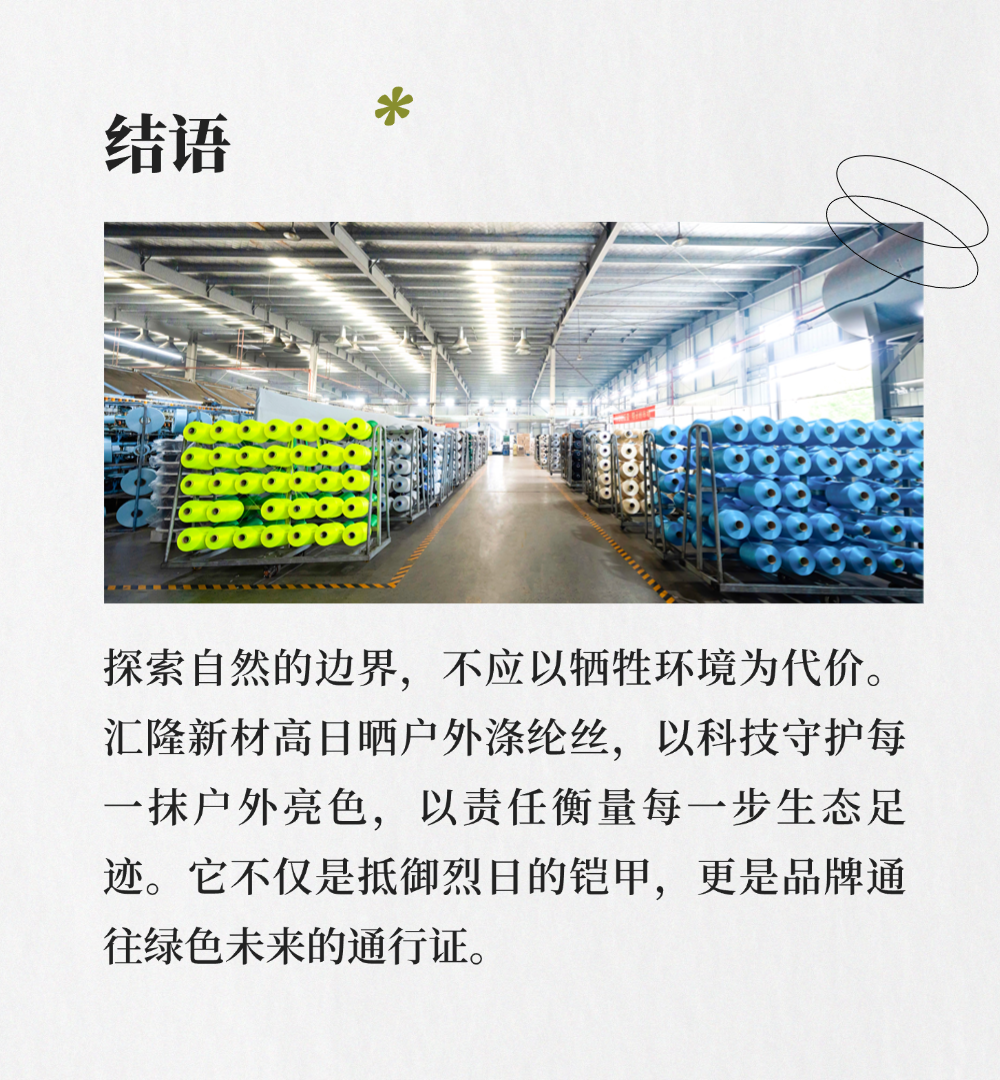 守护自然本色!汇隆新材高日晒涤纶丝:户外服装的“耐晒王”与“环保芯”