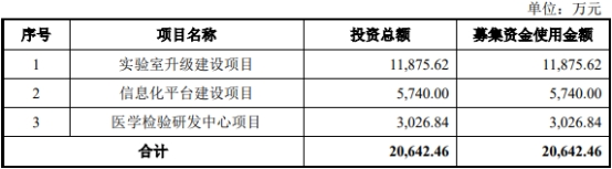 兰卫医学上市发行新股募集资金总额为2.00亿元,扣除发行费用后,募集资金净额为1.39亿元。兰卫医学最终募集资金净额比原计划少6740.28万元。兰卫医学2021年9月8日披露的招股书显示,公司拟募集资金2.06亿元,分别用于实验室升级建设项目、信息化平台建设项目、医学检验研发中心项目。