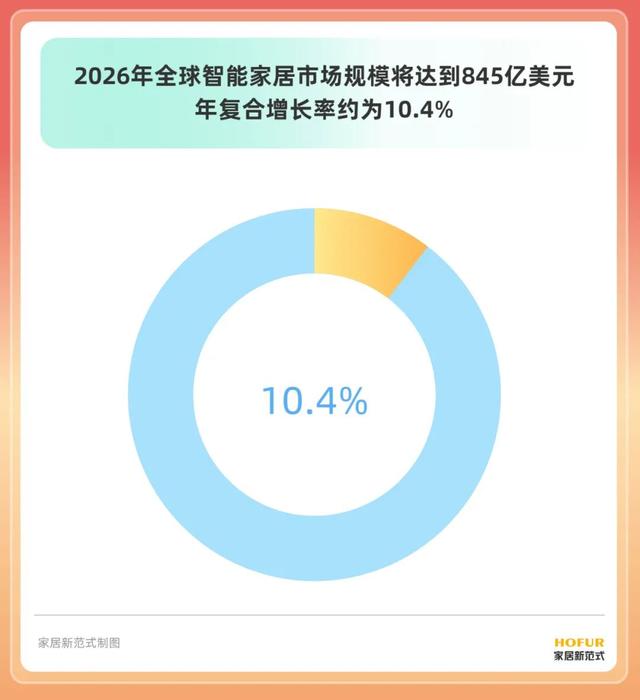 未来,随着移动终端的普及和物联网的推广,智能家居的发展将进一步提速,市场潜力巨大。根据Marketsand发布的智能家居报告显示,2026年全球智能家居市场规模将达到845亿美元,年复合增长率约为10.4%。中商产业研究院预测,2022年我国智能家居市场规模可达6515.6亿元。