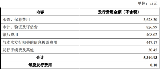 上海艾录本次公开发行新股的发行费用(不含增值税)合计5340.93万元,其中保荐机构中信证券股份有限公司获得承销、保荐费用3628.30万元。