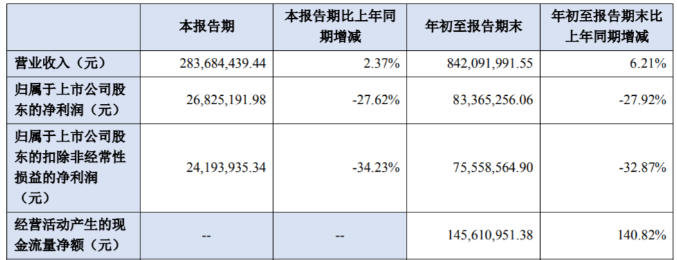 2022年前三季度,上海艾录的营业收入为8.42亿元,同比增长6.21%;归属于上市公司股东的净利润8336.53万元,同比下降27.92%;归属于上市公司股东的扣非净利润7555.86万元,同比下降32.87%;经营活动产生的现金流量净额为1.46亿元,同比增长140.82%。