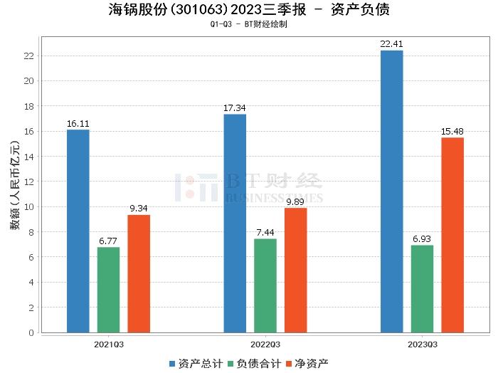 综上所述,海锅股份2023年三季度的经营状况总体稳定,总资产和净资产均有较大增长,显示出公司的资产规模和净资产规模在扩大,财务状况在稳步提升。尽管营业收入和净利润有所下滑,但公司的现金流量状况明显改善,显示出公司的经营活动效益在提升。