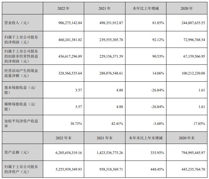 2022年年度报告显示,2022年,力量钻石实现营业收入9.06亿元,同比增长81.85%;归属于上市公司股东的净利润4.60亿元,同比增长92.12%;归属于上市公司股东的扣除非经常性损益的净利润4.37亿元,同比增长90.53%;经营活动产生的现金流量净额为3.29亿元,同比增长14.06%。